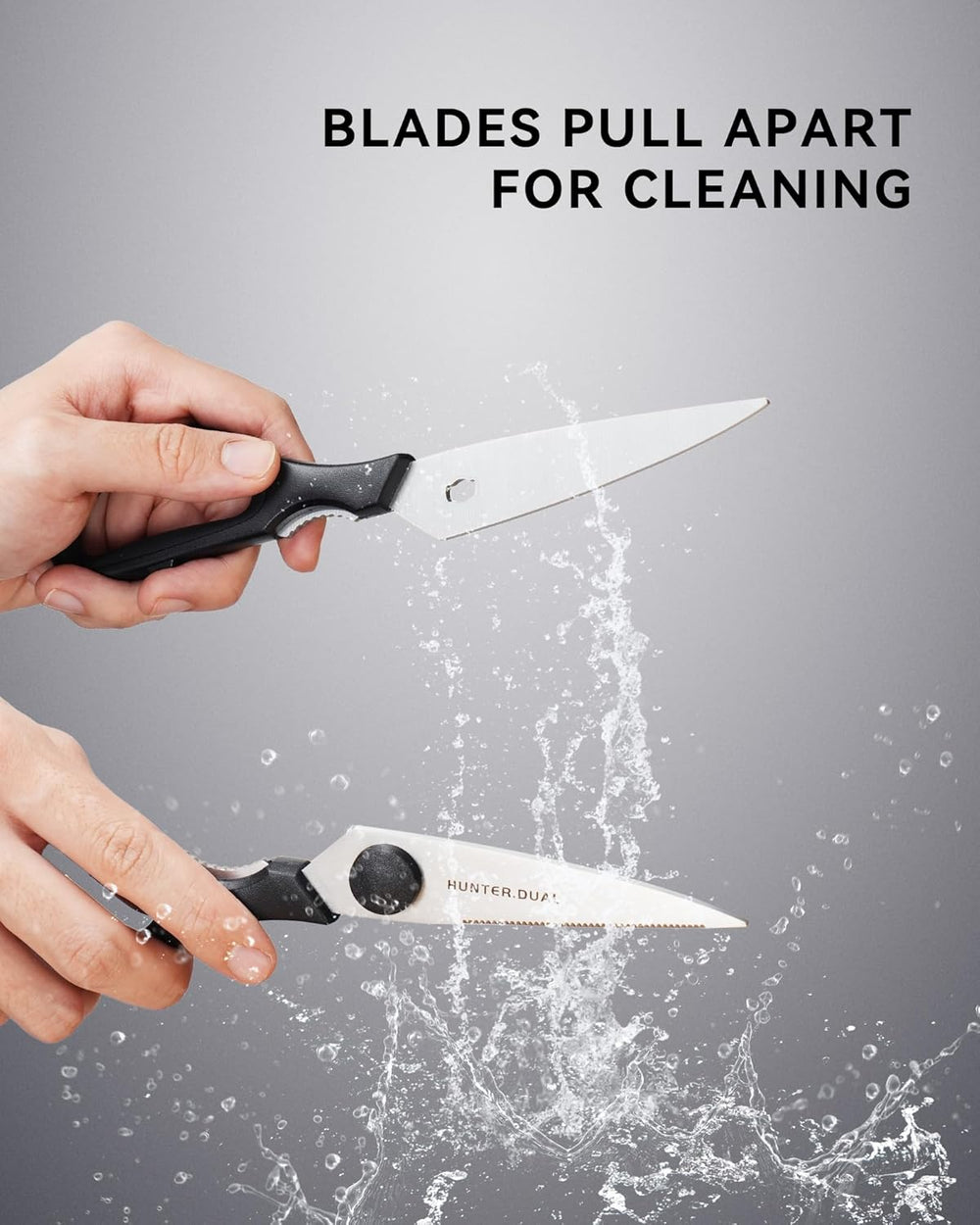 Best scissors ever. Sharp, perfect for all things in the kitchen and my FAVORITE part of it is how easy it is to disassemble, take apart and clean and then put back together again.You won't have to worry about food getting stuck in the crevices or rusting. it's easy to take apart and clean.