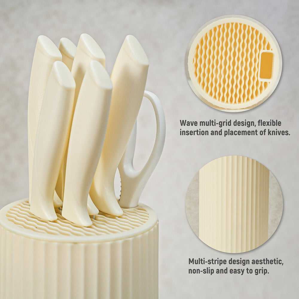 Used them to cut up potatoes tonight for dinner.. So nice to have new knives and I love the holder. Fits nice on my counter.