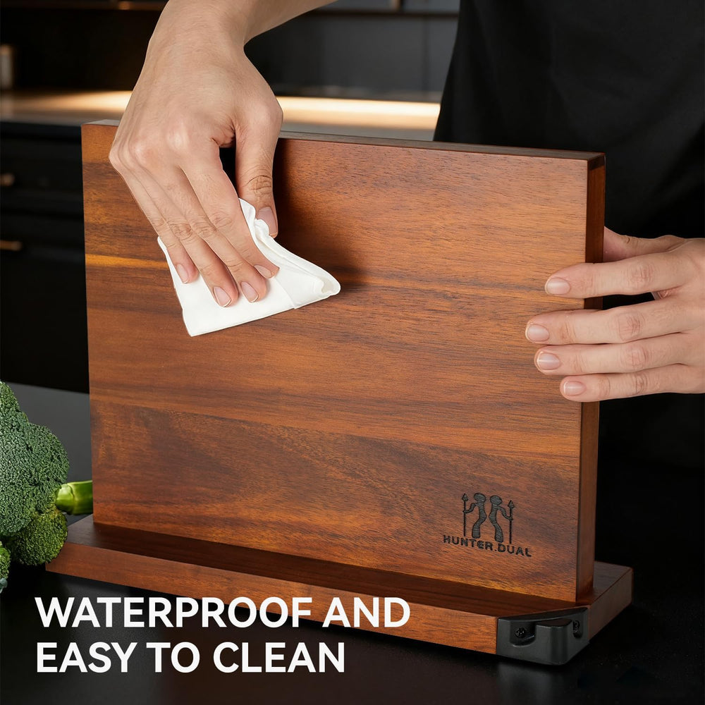 Fits an extra large set of knives plus cooking shears. Strong magnet. Sleek look